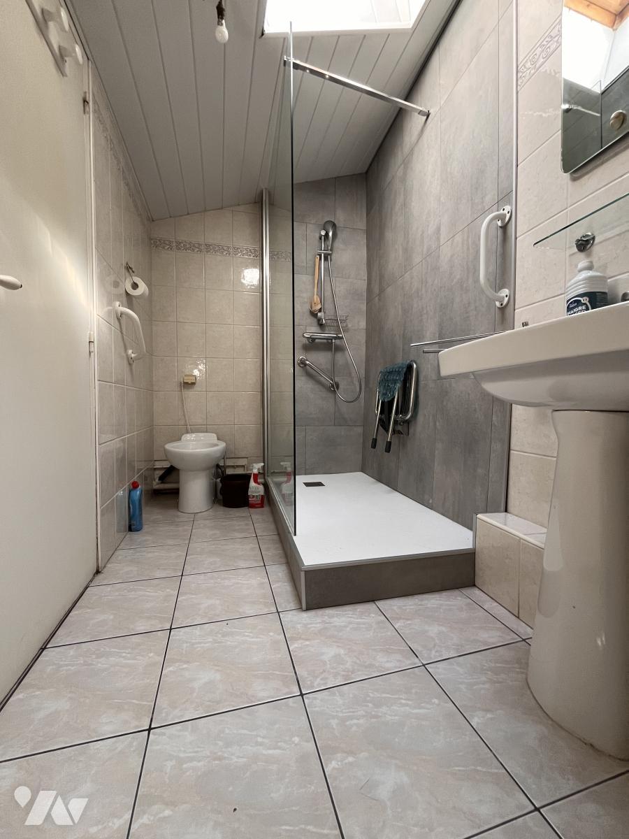 À l’étage palier desservant deux chambres dont une donnant accès au grenier situé au 2nd étage.