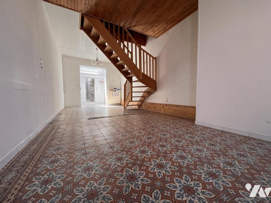 maison de ville de construction brique, mitoyenne, de 1850 , de 60 m² environ bâtie sur et avec 47 m² de terrain comprenant au rez-de-chaussée entrée sur salon séjour ouvert sur cuisine non aménagée et non équipée, salle de bains avec WC.